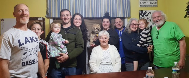 There was also a Family Dinner … soup and salad with daughter Dee and Mike; grandsons Zack and Kristine, Ryan and Maddi, and Gavin; great-granddaughters Addi and Harper; and Mike’s mom Peggy. The photo was graciously snapped by adopted daughter Nikki. Family time. Precious.