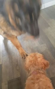 As an aside, Angelina and Puck {Joe’s dog} are getting along very well! No barking … just playing. But that’s the next chapter.