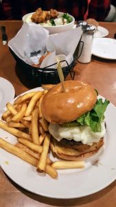 Joe and I had dinner at Mariah’s in downtown Bowling Green. He behaved with a Chicken Tender Cobb Salad. I, on the other hand, chose the Haystack Burger — fresh ground beef patty topped with sauteed mushrooms, mozzarella cheese, a fried onion ring, lettuce, vine-ripe tomatoes and pickles, served on a brioche bun. I have a big mouth but couldn’t get my jaws around it! We followed dinner with a delightful local community theater production of The Best Christmas Pageant Ever. Funny. Poignant. Refreshing.